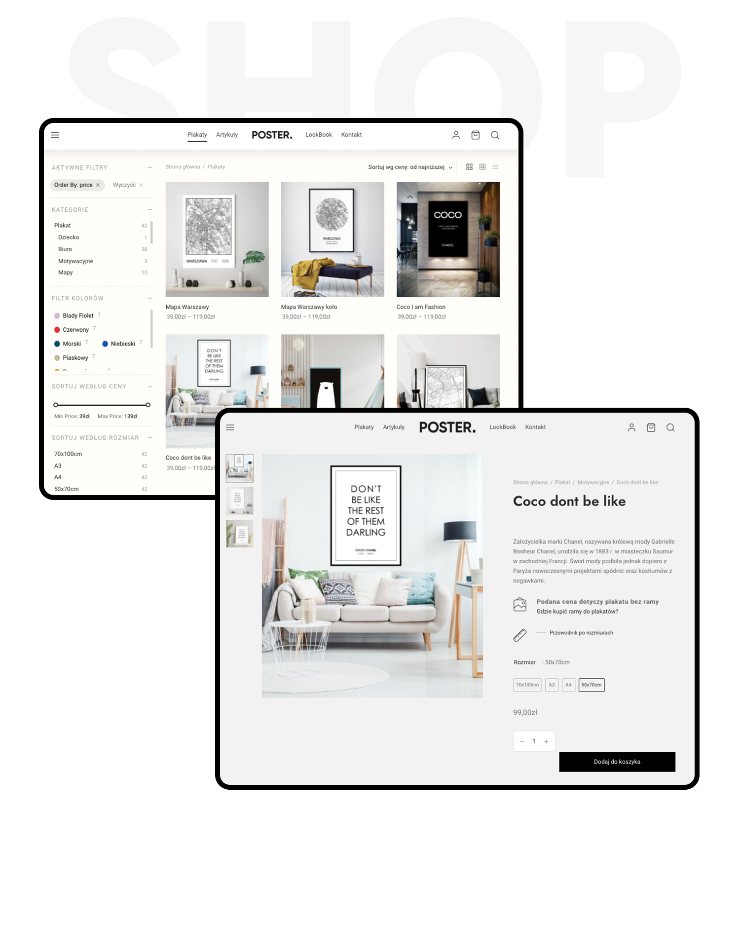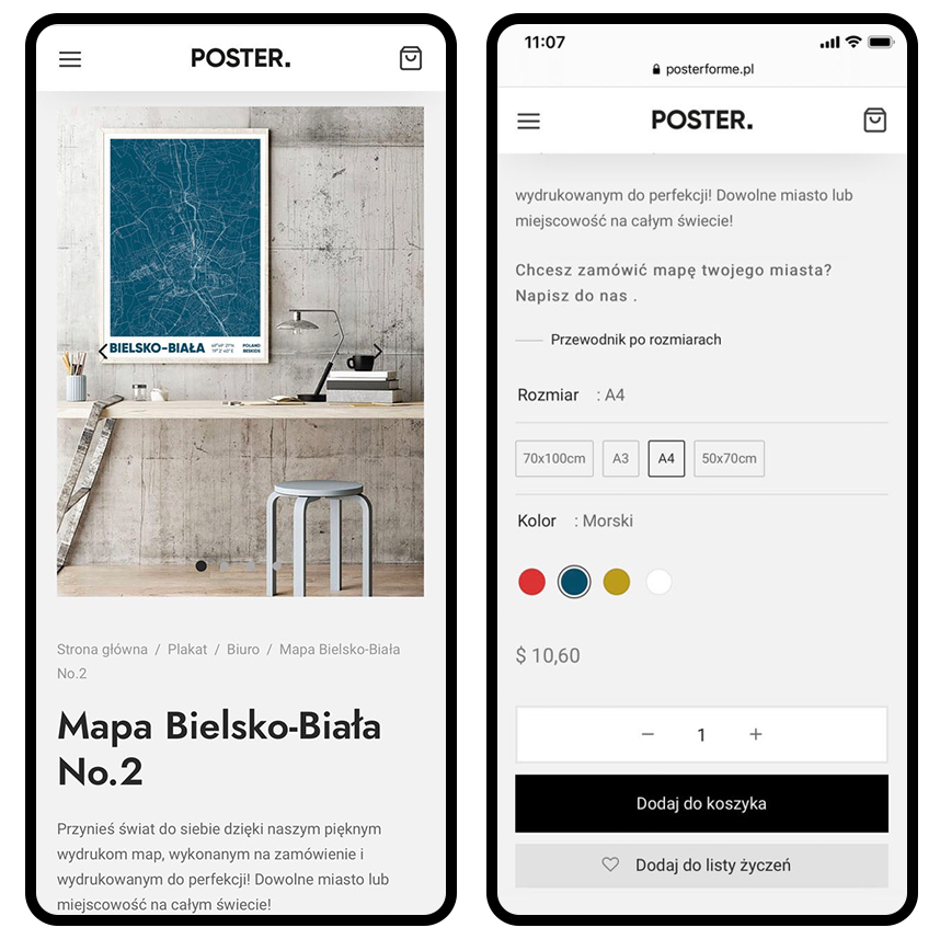 Marka dostarczająca elementy wystroju wnętrz w formie plakatów. Zadanie to stworzenie wygodnej i łatwej w obsłudze platformy e-commerce.